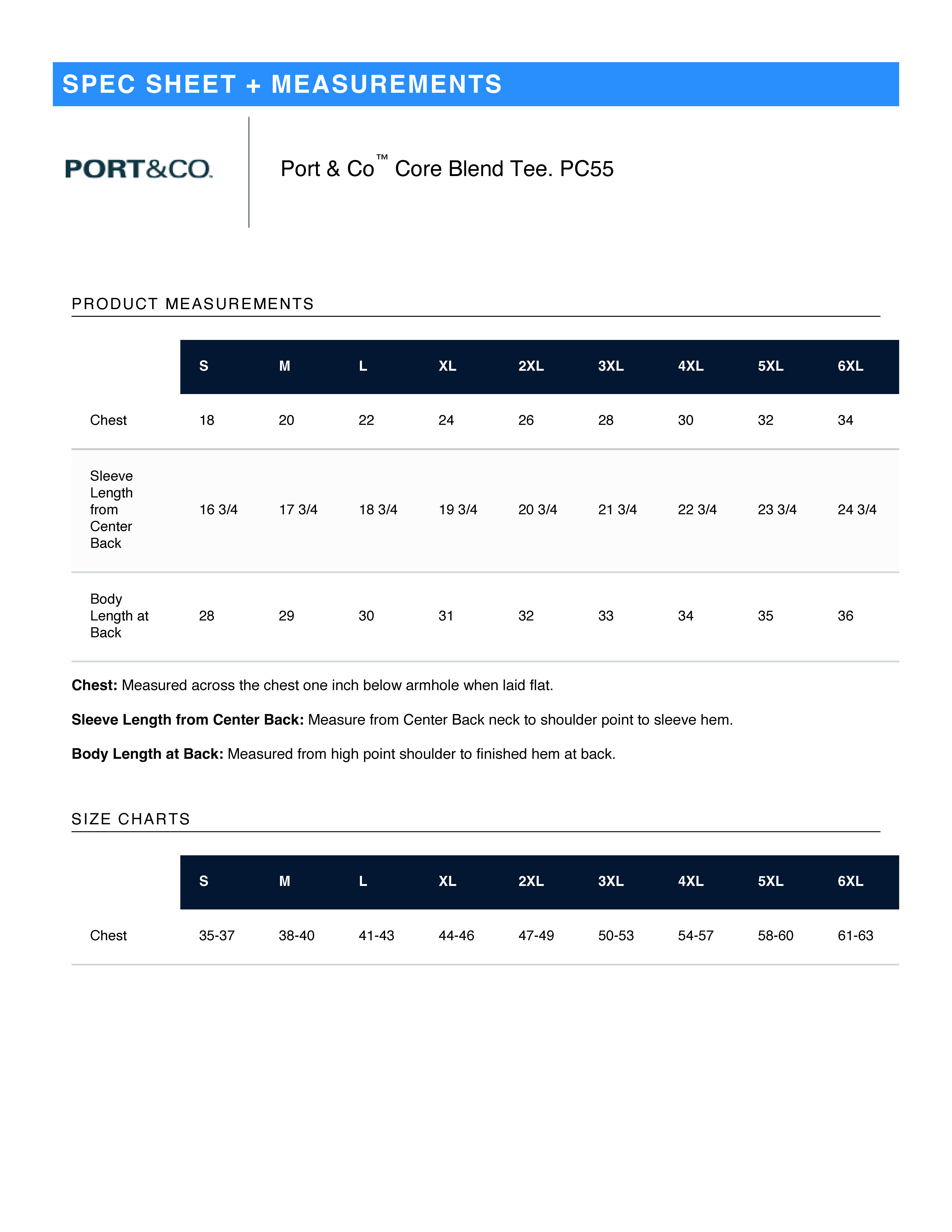 Size Specifications Chart